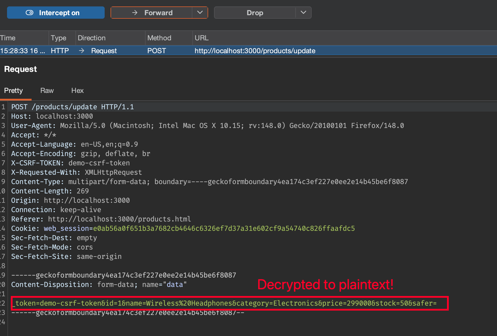 Most people think client-side encryption protects the data. It doesn’t, at least not from someone with coding skill, a Burpsuite, and some determination.